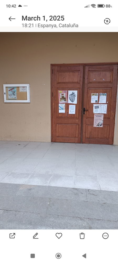 Per a presentar millor els cartels d'activitats a la Sala Gorg Negre, proposo col.locar una vitrina a la paret a la dreta de la porta.